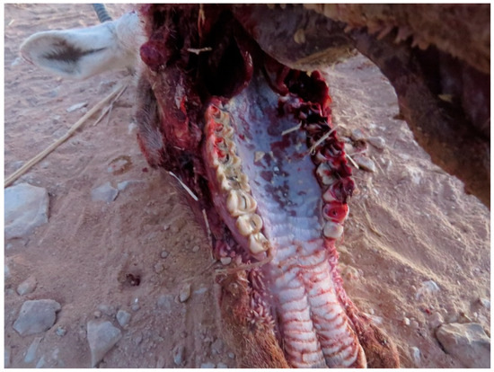 Deserts, majestic mountains, and green landscapes are all part of the Sultanate of Oman, a small country with an abundance of biodiversity, a remarkable natural patrimony that should be preserved. In Oman, historically, the Asiatic lion (Panthera leo persica, Meyer, 1826) was also present [34]. The region experienced serious changes that affected the fauna, particularly in the context of the last century. The disappearance of selected species, such as the Arabian oryx (Oryx leucoryx) in 1972 [2], and the Asiatic cheetah (Acinonyx jubatus venaticus, Griffith, 1821) in 1977 [35], were indicative of these marked changes and serious threats affecting the natural environment of the country. Poaching was certainly the most important threat for wild fauna. In Oman, poaching not only led to the extinction of the oryx, but even hampered repopulation programs, especially during a period of heavy oryx hunting in 1996–1997. Despite that as per Ministerial Decision, the hunting of all species of the wild has been banned since 1993 [36], reports of law infringements [37] call attention to the threat to wildlife. However, even if the problem of uncontrolled hunting, as in the past, is still a reality and deserves efficient preventive measures, such as active monitoring of the territory by rangers and other public forces, risks related to animal health, as demonstrated by the present study, should be carefully taken into account and prevented with adequate resources and trained staff. The survival of endangered wildlife and the achievement of Oman’s Vision 2040 program target can only be ensured by utilizing rational planning, research implementation, and natural resource management.