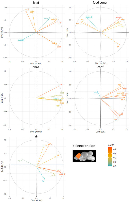 uro 1 was only down-regulated in the feed-control and confinement groups. The detailed visualization of the expression patterns in the telencephalon can be found in