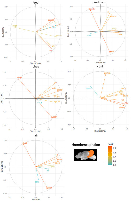 Figure 7). The other genes with strong contributions to the outcome in this brain part varied for each stressor.