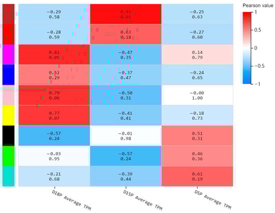 - Langfelder, P.; Horvath, S. WGCNA: An R package for weighted correlation network analysis. BMC Bioinform. 2008, 9, 559. [Google Scholar] [CrossRef]