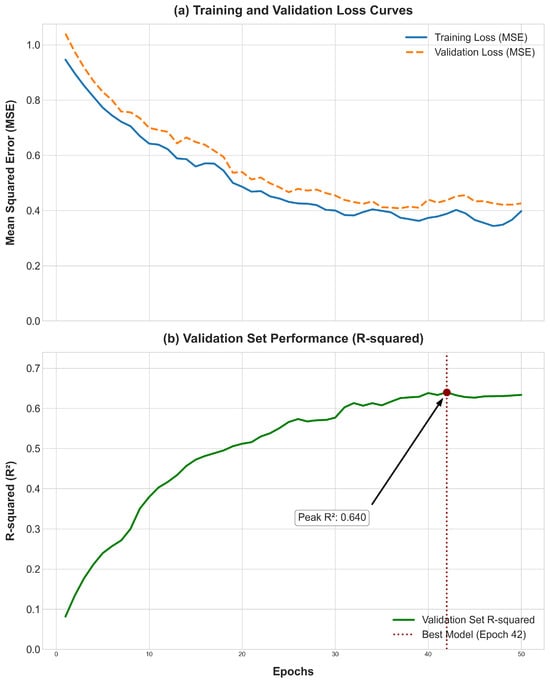 Optimal configurations for each model were identified through a systematic Grid Search methodology. For each hyperparameter combination, models were trained on the training set, and their performance was assessed on the validation set using the coefficient of determination (R2). The parameter set yielding the highest R2 on the validation set was selected for the final model configuration. The test set was excluded entirely during all training and tuning phases and was used only once for the final, unbiased performance assessment. To ensure exact reproducibility of our results, a fixed random seed (seed = 42) was used for all stochastic processes, including model weight initialization and the random masking operations during pre-training.
