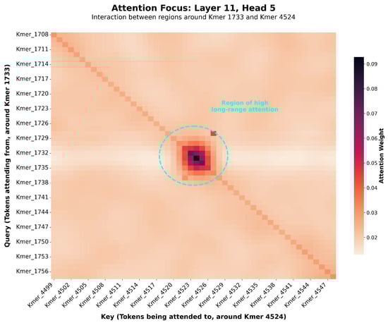 As shown in attention maps (an example concept depicted in Figure 7), when predicting a trait, the model simultaneously assigns high attention scores to multiple, physically distant genomic regions. It is important to clarify that our model operates not on individual SNPs but on k-mer tokens, where each token represents a sequence of SNPs. Consequently, the attention mechanism identifies these tokenized regions as important, which precludes the pinpointing of individual SNP loci from this level of analysis. This demonstrates that the model is not just relying on local linkage disequilibrium but is actively identifying and utilizing relationships between distal loci, which is crucial for modeling complex epistatic interactions [7,30]. The alignment of our model’s predictions with established biological markers strongly suggests that it is not merely capturing statistical noise but is learning to identify genomic loci with known relevance to the predicted trait. This capability not only validates the effectiveness of our model but also establishes it as a powerful hypothesis-generation tool for discovering novel candidate gene regions.