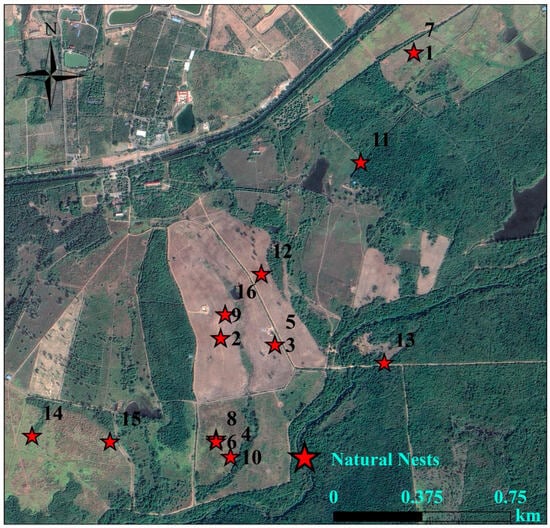 Distribution of artificial nests in Datian National Nature Reserve, Hainan, in 2023.