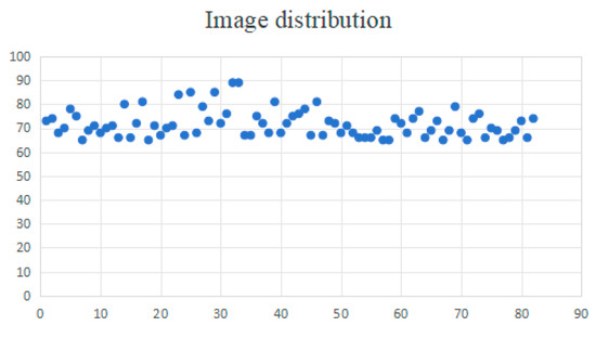 After applying the six aforementioned data augmentation methods to 82 Hu sheep, a total of 6055 Hu sheep face images were obtained. The image distribution of 82 Hu sheep is shown in Figure 5 below: