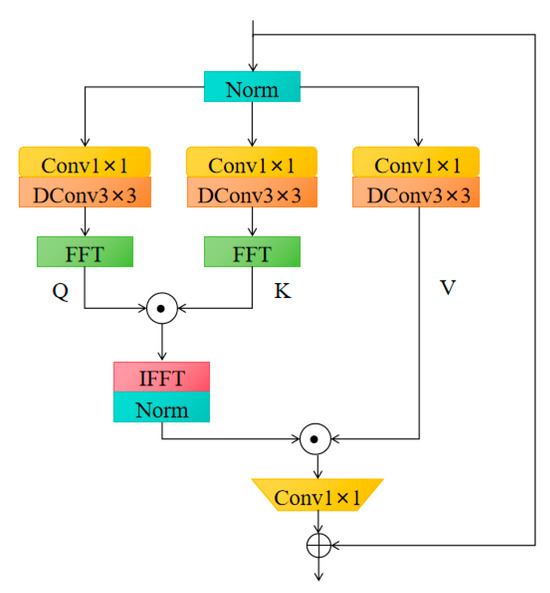 Here, Q, K, and V are generated from the input features through 1 × 1 convolutions, and dk is the reduced number of channels.