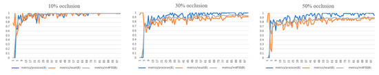 To analyze the impact of occlusion levels on automatic labeling performance, we conducted experiments on images of sheep face regions with different occlusion levels (10%, 30%, and 50%) and evaluated the accuracy and recall of automatic labeling, as shown in Figure 13.