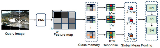 The structure of QAConv [26] is shown in Figure 4. The query image of individual cows is input into the network, and CNN backbone networks are used to extract feature maps of the query image and candidate Gallery images. Class Memory extracts a fixed size local region at each spatial position of the feature map to adaptively adjust the convolution kernel parameters. In the Response phase, the local matching scores are calculated by the pointwise convolution of the adaptive convolution kernel and feature map. Next, Global Mean Pooling aggregates local matching scores into global matching scores while reducing dimensionality. Finally, BN-FC-BN converts the matching score into the similarity measure to match the query image and candidate images.