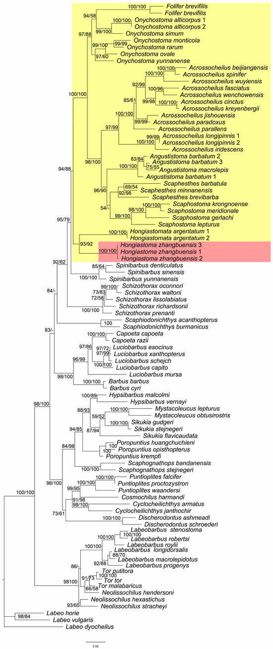 Hongiastoma zhangbuensis, a New Species of the Subfamily Acrossocheilinae (Teleostei: Cyprinidae) from South China †