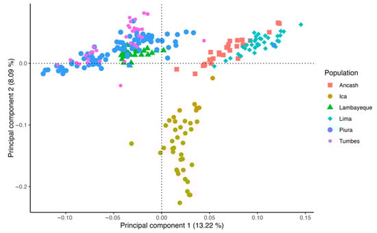 Although some regions such as Ancash and Lambayeque are marginally represented in the dataset (n = 27 and n = 28, respectively), this imbalance was primarily due to logistical constraints and limited accessibility during the sampling period. Despite these limitations, samples from these regions were included to ensure broader geographic coverage and to capture at least a partial view of their genetic diversity. We acknowledge this limitation and recommend that future studies aim for more balanced sampling to enhance the strength of population-level comparisons.