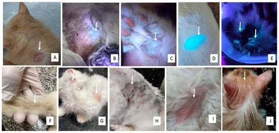 53. Murmu, S.; Debnath, C.; Pramanik, A.K.; Mitra, T.; Jana, S.; Dey, S.; Banerjee, S.; Batabyal, K. Detection and characterization of zoonotic dermatophytes from dogs and cats in and around Kolkata. Vet. World. 2015, 8, 1078–1082. [Google Scholar] [CrossRef]
