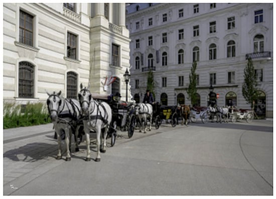 - Wiener Fiaker- und Pferde-mietwagengesetzes, LGBl. 34/2016. 2017. Available online: https://www.ris.bka.gv.at/GeltendeFassung.wxe?Abfrage=LrW&Gesetzesnummer=20000190 (accessed on 4 September 2025).