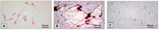 Accurate assessment of sperm morphology is essential for artificial insemination using liquid-preserved boar semen. This study compared nine commonly used staining techniques, eosin, eosin–nigrosin, Diff-Quick