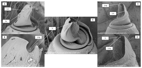 Scanning electron micrographs were made in a low vacuum using a Hitachi FlexSEM 1000 II (Hitachi High-Tech Corporation, Tokyo, Japan) scanning electron microscope at the Plant Protection Institute of the HUN-REN Centre for Agricultural Research (Martonvásár, Hungary). Objects were coated with 20 nm of gold before examination.