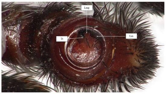 Palpus photo of Eresus rubrocephalus sp. n. (holotype). Lm: lamella; Lmg: lamellar groove; Tt: terminal tooth.