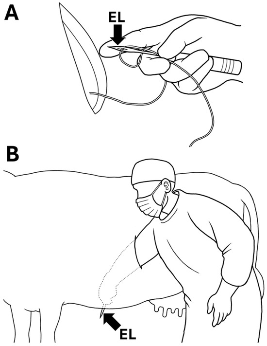 - Grymer, J.; Sterner, K.E. Grymer/Sterner Toggle Suture-Repair of the Left Displaced Abomasum (LDA) in the Bovine. Available online: http://www.ldatogglesuture.com/ (accessed on 31 July 2025).