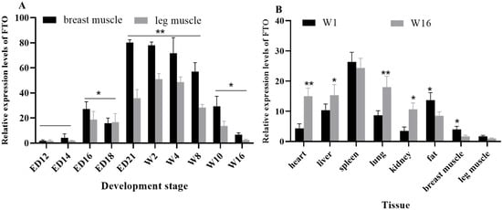 Chicago/Turabian StyleDing, Hao, Lan Chen, Can Chen, Tao Zhang, Weilin Chen, Genxi Zhang, Jinyu Wang, and Kaizhou Xie. 2025. "Association Analysis of the FTO Gene Polymorphisms with Growth and Carcass Traits of Heying Black Chicken and Tissue Expression Profile" Animals 15, no. 18: 2718. https://doi.org/10.3390/ani15182718
