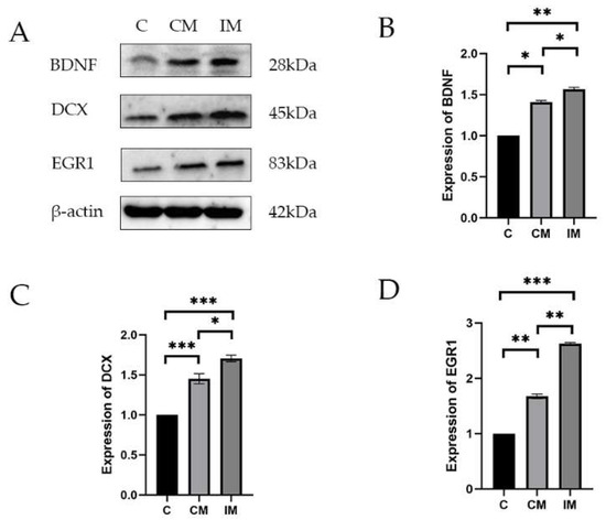 - Gualtieri, F.; Brégère, C.; Laws, G.C.; Armstrong, E.A.; Wylie, N.J.; Moxham, T.T.; Guzman, R.; Boswell, T.; Smulders, T.V. Effects of Environmental Enrichment on Doublecortin and BDNF Expression along the Dorso-Ventral Axis of the Dentate Gyrus. Front. Neurosci. 2017, 11, 488. [Google Scholar] [CrossRef]