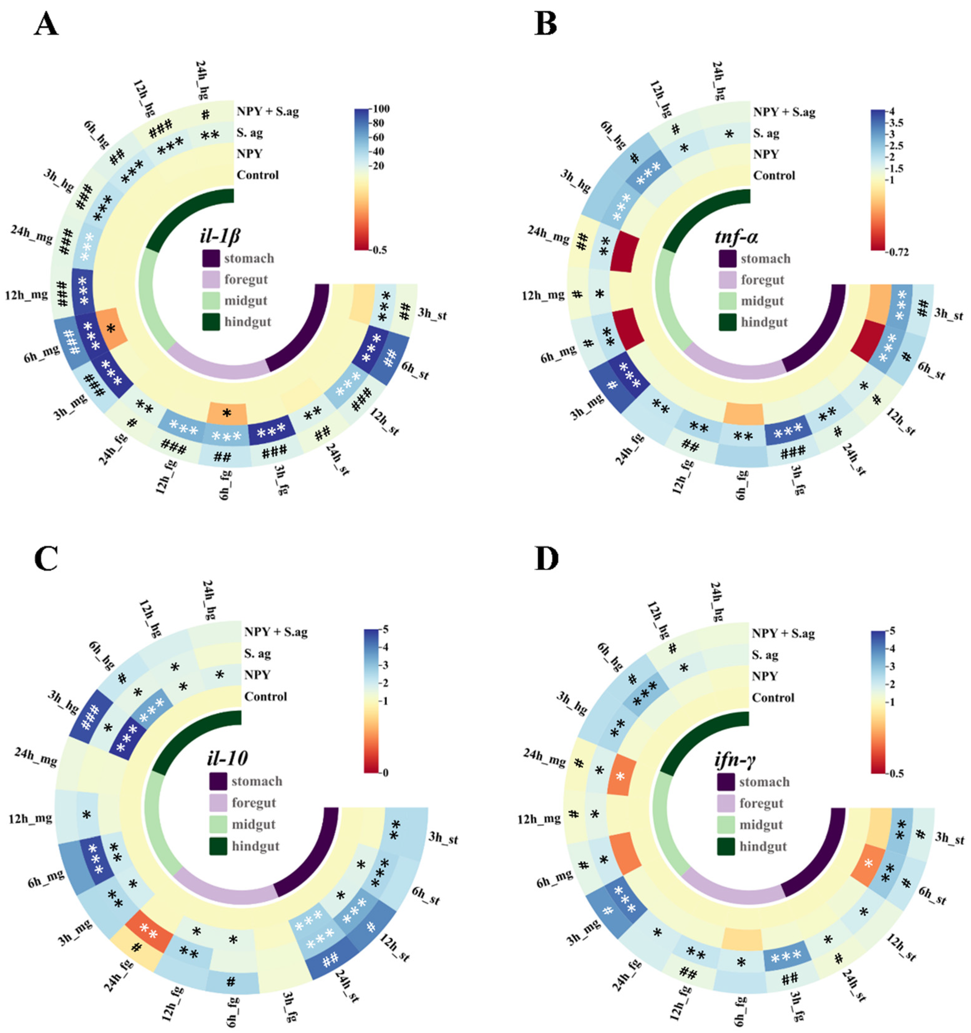 - Yang, T.; Lai, K.; Yu, Y.; Liao, Z.; Cai, R.; Yu, X.; Li, W. Effects of neuropeptide Y on the immune-protection and intestinal tract of juvenile Micropterus salmoides. Gen. Comp. Endocrinol. 2024, 351, 114480. [Google Scholar] [CrossRef]