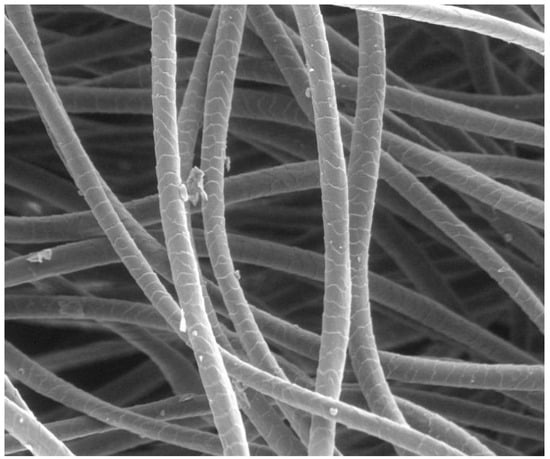 The outermost layer of wool fibres is the cuticle, a sheath of overlapping, scale-like cells that constitute approximately 10% of the fibre’s mass. These scales overlap in the longitudinal direction like tiles on a roof, with their edges pointing from the fibre root to its tip [32,33] (Figure 1).