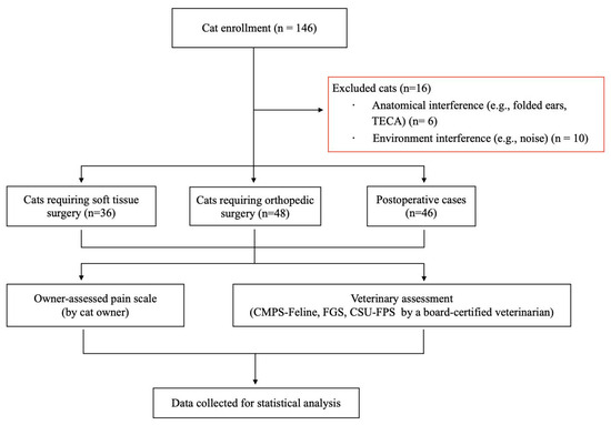 - Adami, C.; Filipas, M.; John, C.; Skews, K.; Dobson, E. Inter-observer reliability of three feline pain scales used in clinical practice. J. Feline Med. Surg. 2023, 25, 1098612X231194423. [Google Scholar] [CrossRef]