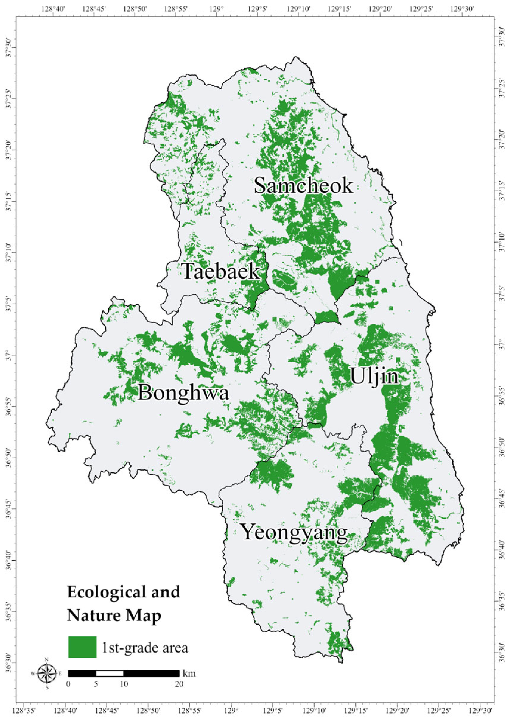 - Park, Y.H.; Lee, H.W.; Kim, K.G.; Lee, G.G.; Choi, J.Y.; Heo, S.J.; Seo, G.W. Development of Designation Criteria for Ecological Protected Areas and its Application Methodology. J. Environ. Impact Assess. 2008, 17, 177–188. [Google Scholar]
