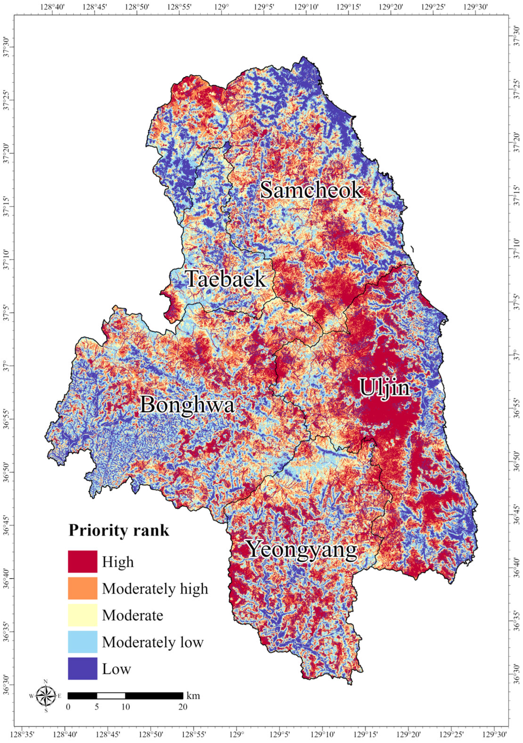 - Park, S.Y.; Park, H.M.; Lee, S.D. Potential Habitat and Priority Conservation Areas for Endangered Species in South Korea. Animals 2025, 15, 1158. [Google Scholar] [CrossRef]