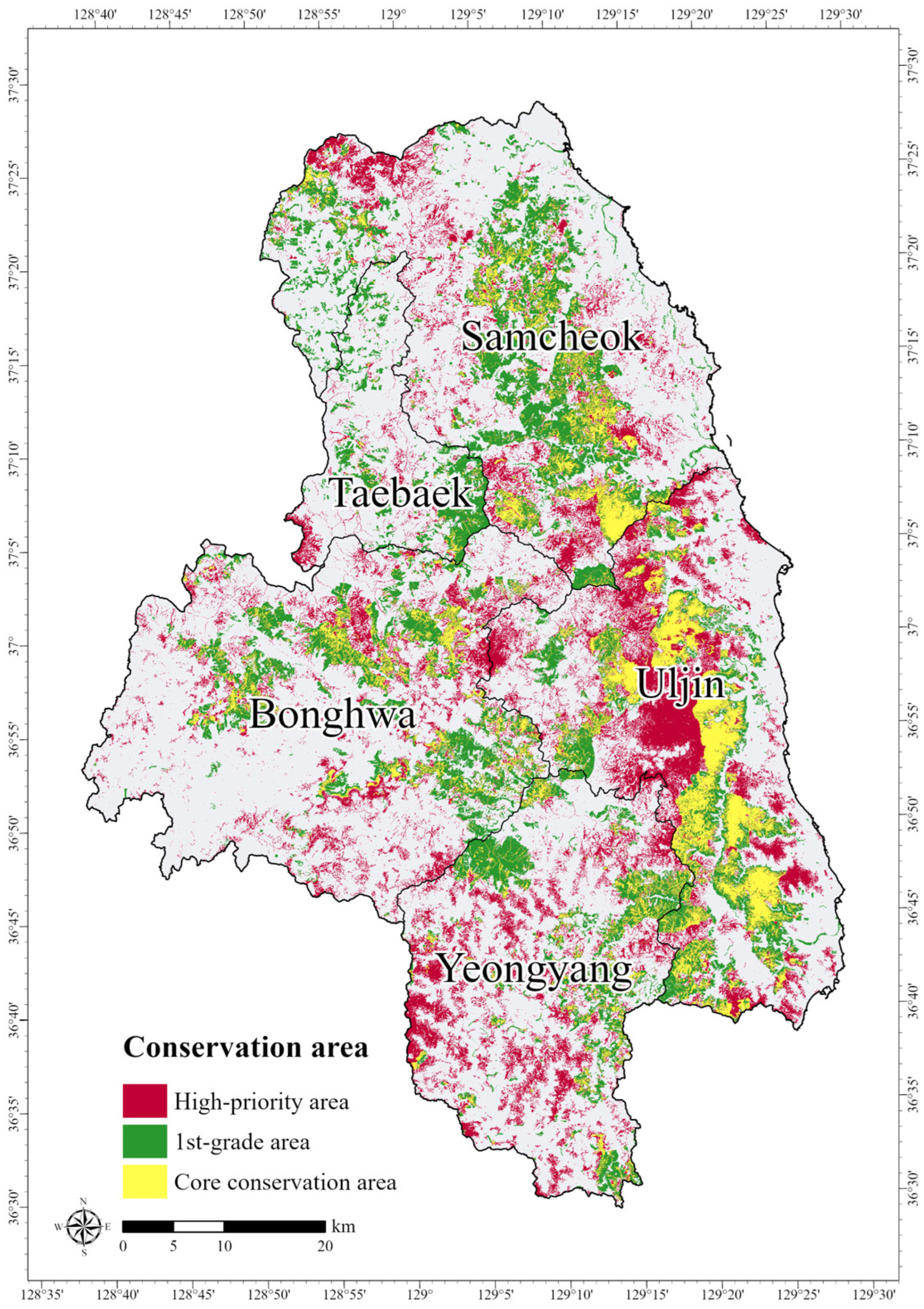 - Mo, Y.W. Spatial Conservation Prioritization Considering Development Impacts and Habitat Suitability of Endangered Species. Korean J. Environ. Ecol. 2021, 35, 193–203. [Google Scholar] [CrossRef]