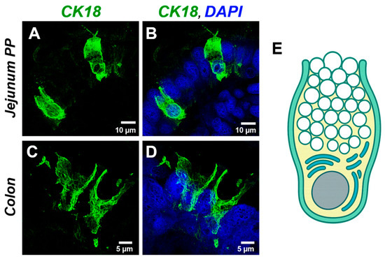 3.9. Confocal Microscopy Imaging of Solitary CK18+ GCs in Jejunal PPs and Colon