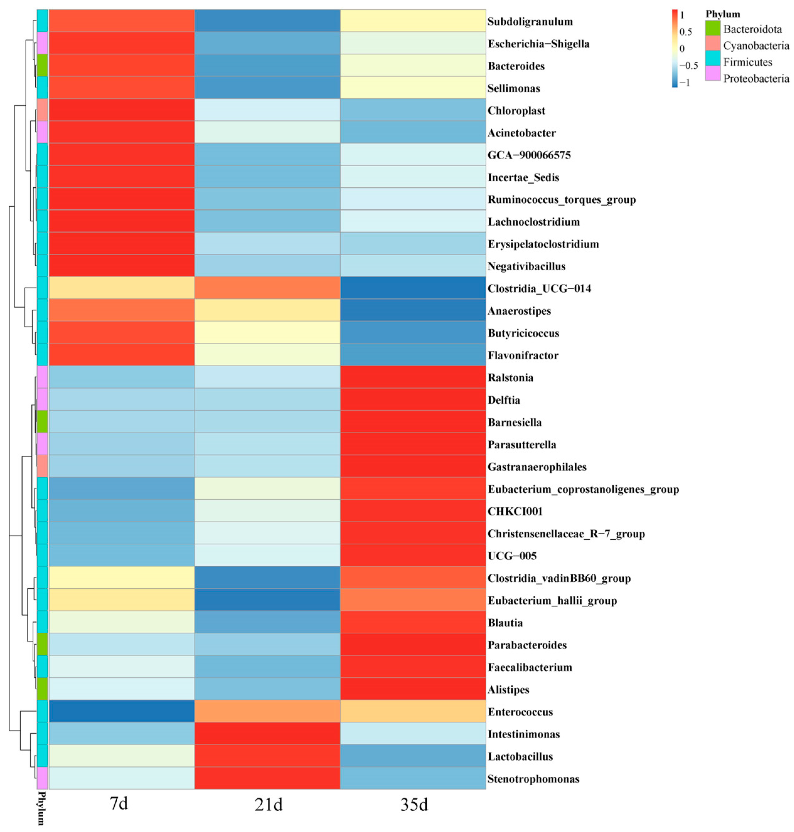 - Lou, C.; Chen, Z.; Bai, Y.; Chai, T.; Guan, Y.; Wu, B. Exploring the microbial community structure in the chicken house environment by metagenomic analysis. Animals 2023, 14, 55. [Google Scholar] [CrossRef]