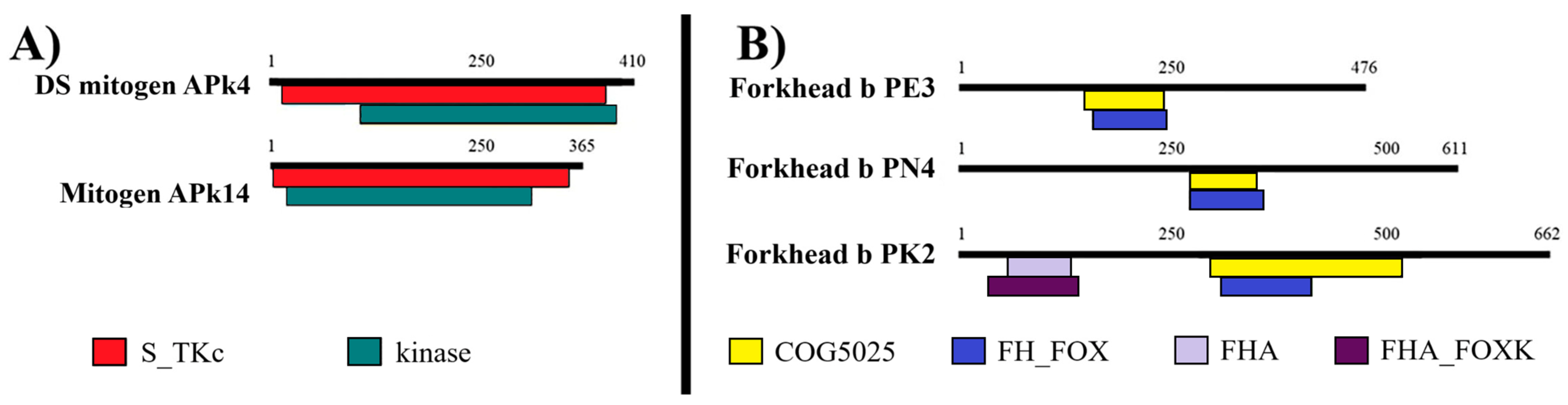 - Yu, Z.; Geng, Y.; Huang, A.; Wang, K.; Huang, X.; Chen, D.; Ou, Y.; Wang, J. Molecular characterization of a p38 mitogen-activated protein kinase gene from Scylla paramamosain and its expression profiles during pathogenic challenge. J. Invertebr. Pathol. 2017, 144, 32–36. [Google Scholar] [CrossRef]