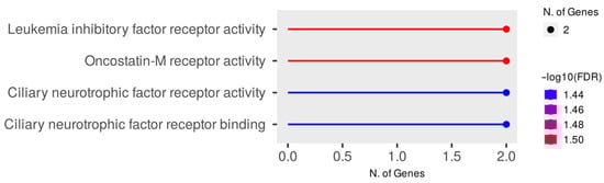 When analyzing the enrichment of the DZM vs. AM network according to the gene ontology of molecular functions, it was found that the LIFR and OSMR genes are involved in the pathways GO:0004923 leukemia inhibitory factor receptor activity, GO:0004924 oncostatin-M receptor activity, GO:0004897 ciliary neurotrophic factor receptor activity, GO:0005127 ciliary neurotrophic factor receptor binding (FDR = 0.0306–0.0365), (Figure 7).