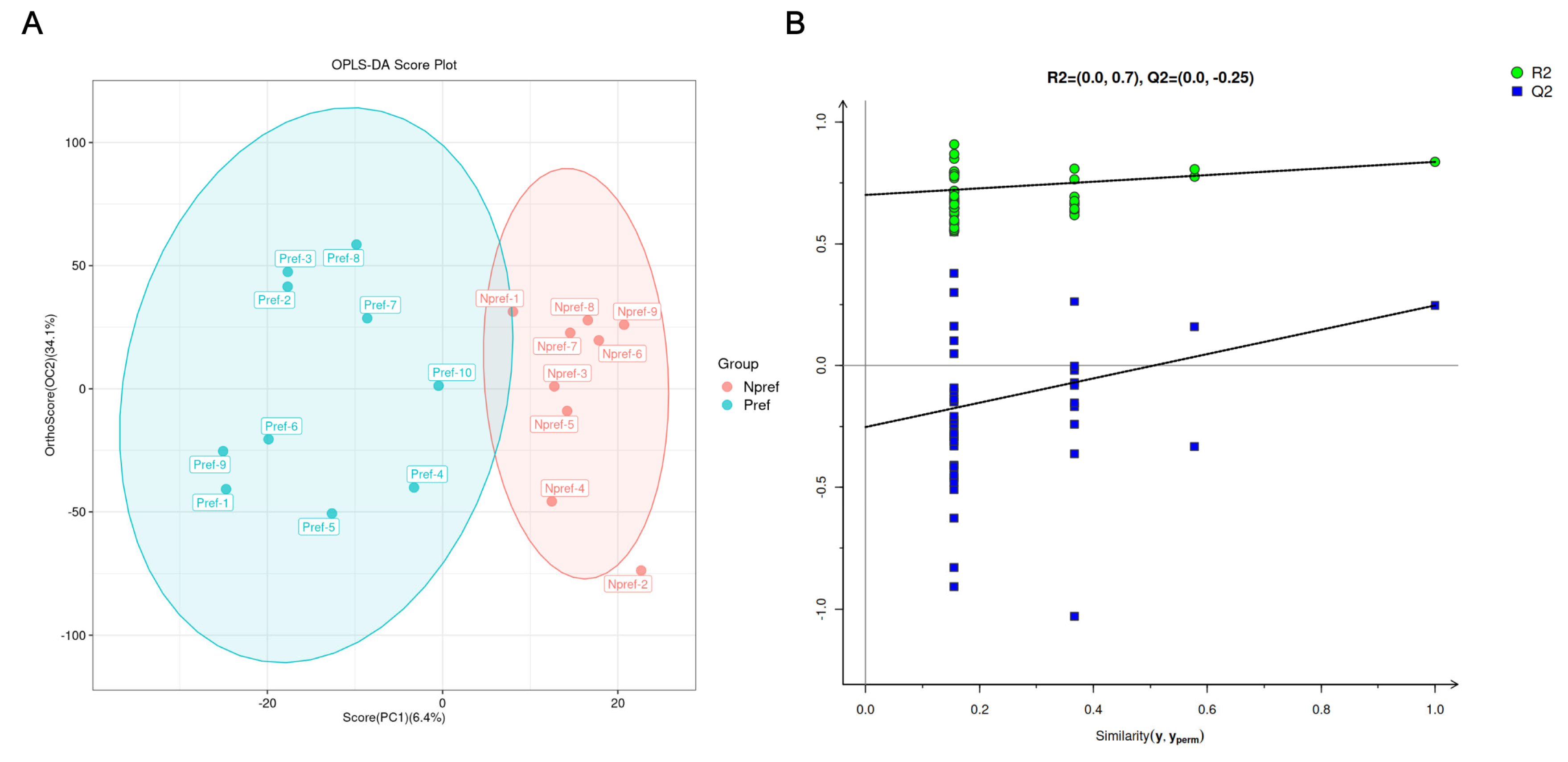 3.3. Differential Metabolites Screening Between the Pref and Npref Group