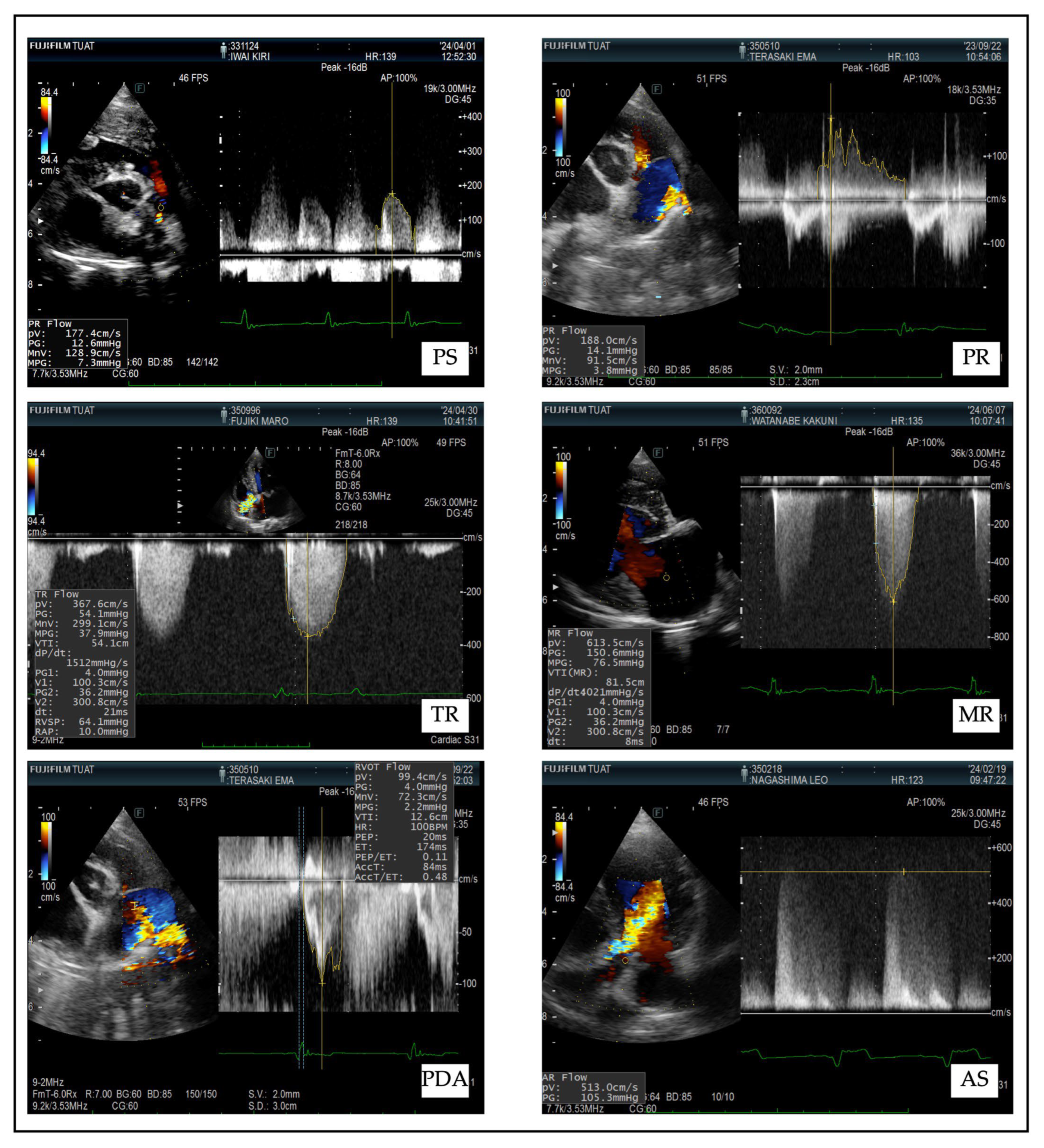 - Doiguchi, O.; Takahashi, T. Examination of Quantitative Analysis and Measurement of the Regurgitation Rate in Mitral Valve Regurgitation by the “Proximal Isovelocity Surface Area” Method. J. Vet. Med. Sci. 2000, 62, 109–112. [Google Scholar] [CrossRef]