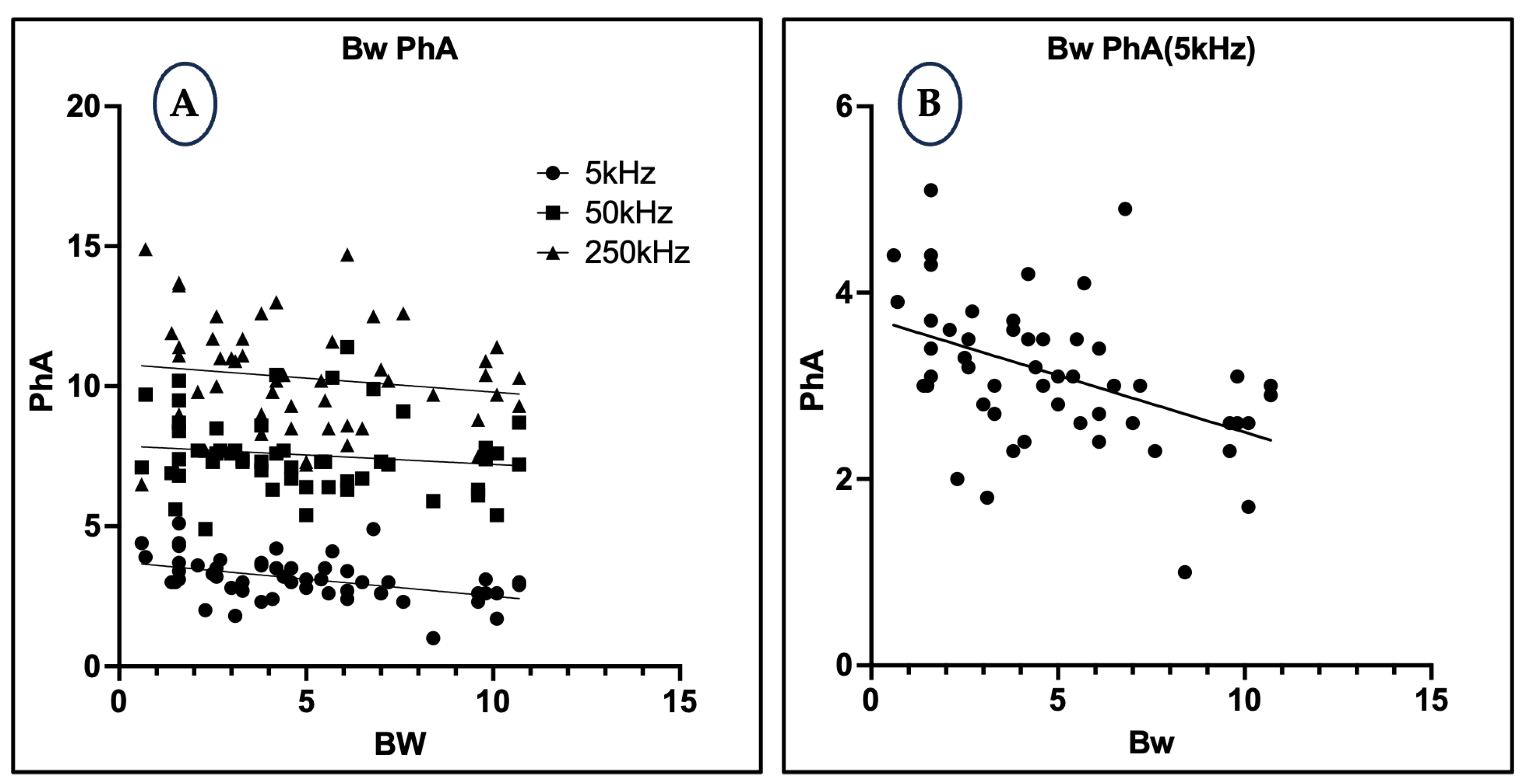 Chicago/Turabian StyleLi, Zongru, Ahmed S. Mandour, Ahmed Farag, Tingfeng Xu, Kazuyuki Terai, Kazumi Shimada, Lina Hamabe, Aimi Yokoi, and Ryou Tanaka. 2025. "Phase Angle as a Non-Invasive Biomarker of Fluid Overload in Canine Right Heart Failure: A Bioelectrical Impedance Approach" Animals 15, no. 19: 2877. https://doi.org/10.3390/ani15192877