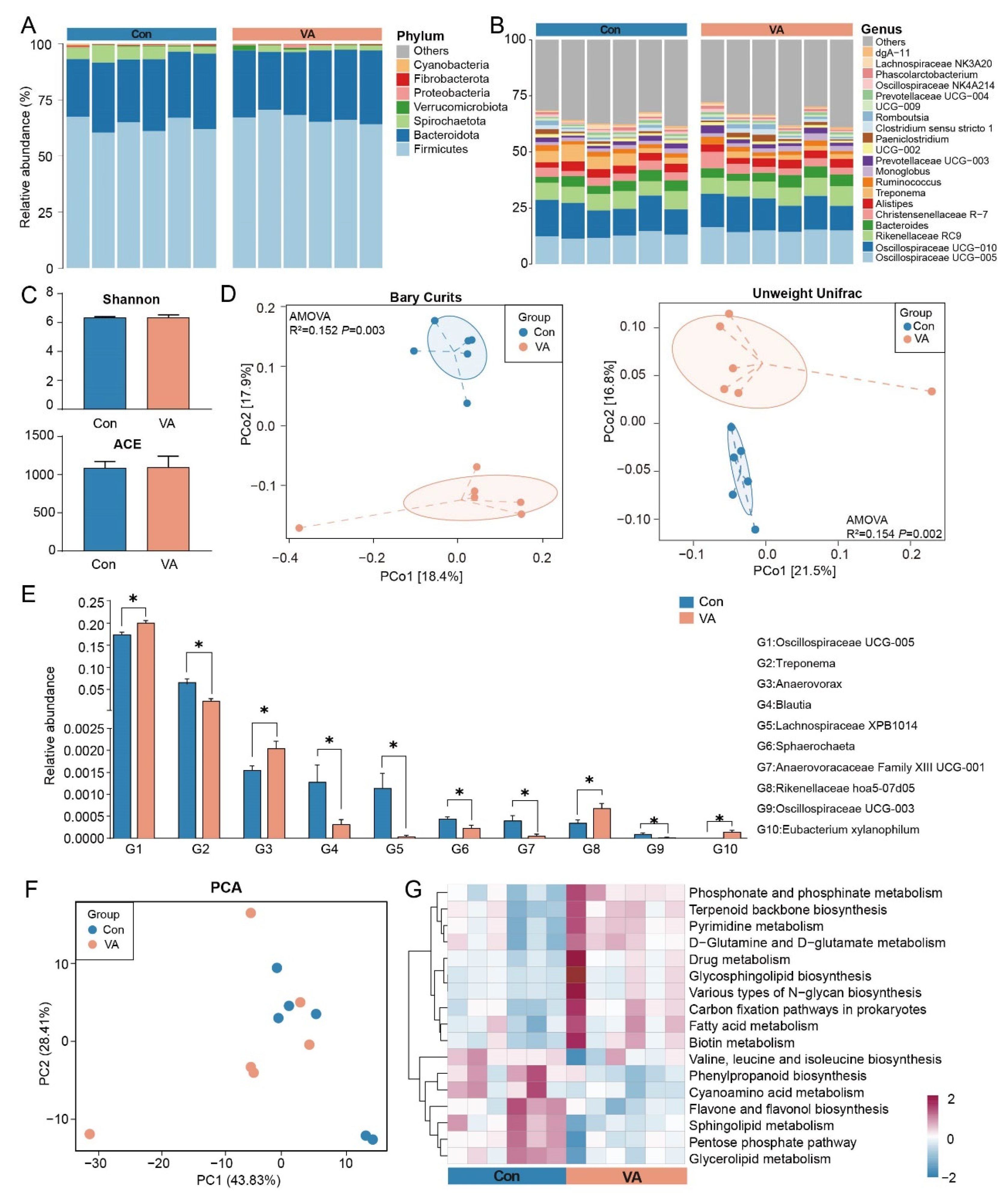 3.1. VA Supplementation Alters Gut Microbiota Composition