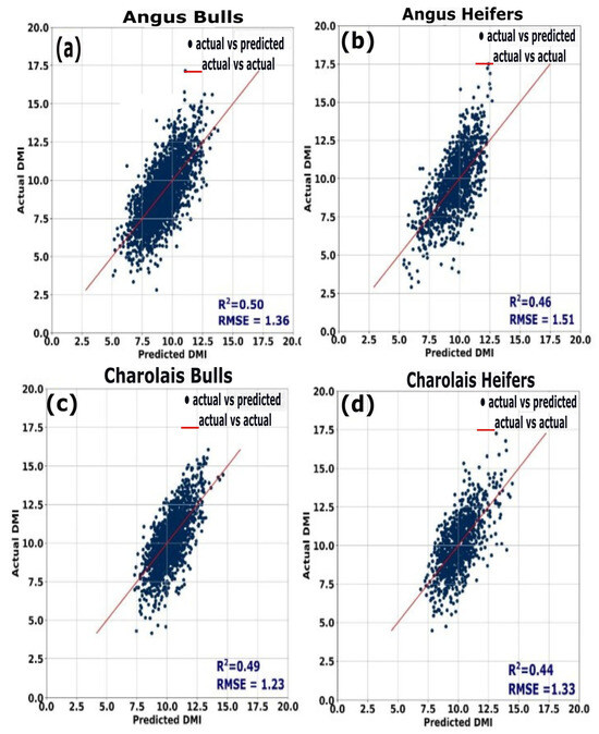 - ArunKumar, K.E.; Blake, N.E.; Walker, M.; Yost, T.J.; Mata-Padrino, D.; Holásková, I.; Yates, J.W.; Hatton, J.; Wilson, M.E. Predicting dry matter intake in cattle at scale using gradient boosting regression techniques and Gaussian process boosting regression with Shapley additive explanation explainable artificial intelligence, MLflow, and its containerization. J. Anim. Sci. 2025, 103, skaf041. [Google Scholar] [CrossRef] [PubMed]