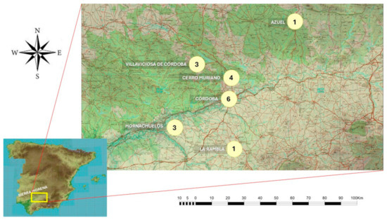 The Sierra Morena hunting area in the province of Córdoba covers an area of 437,852 ha and is predominantly forested land with different uses: grazing areas, pastures, dense trees, and scrubland [34]. Deer are the main big game hunted in this mountain area, followed by wild boar.