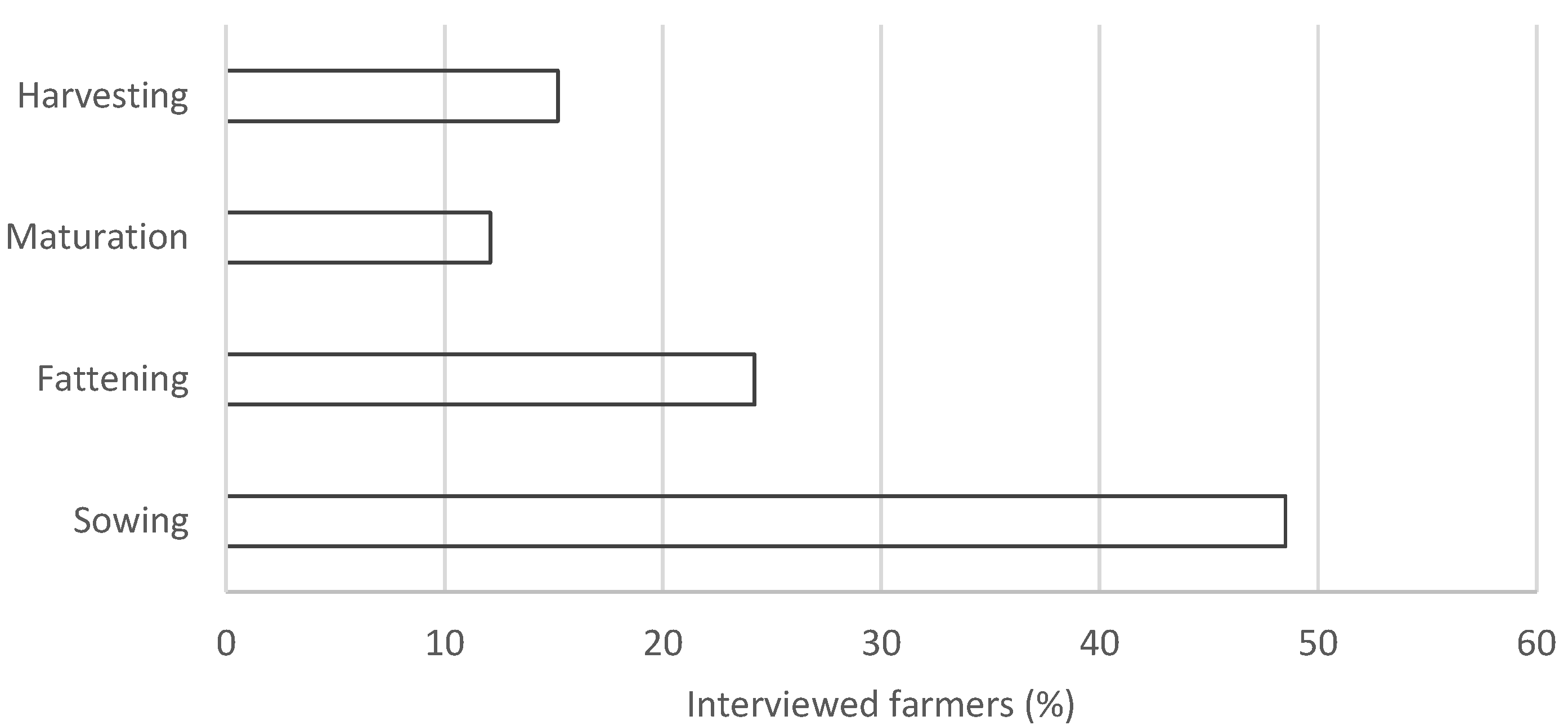 Figure 5. Phases of the production chain most affected by sea turtles’ interactions according to the interviewed farmers.