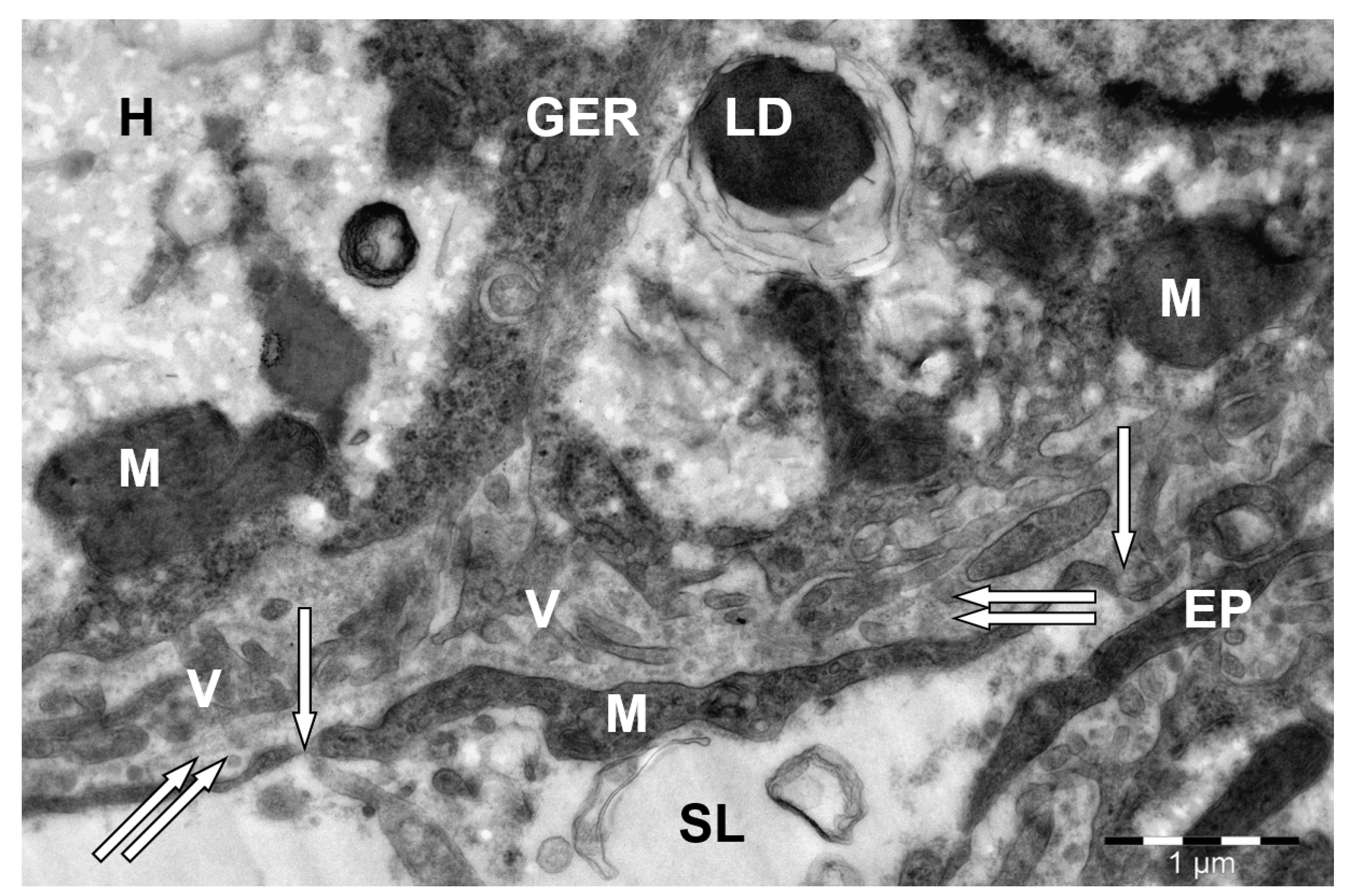 - Prusakova, A.V.; Zelenevskiy, N.V.; Prusakov, A.V.; Yashin, A.V.; Ponamarev, V.S. Ultra-structural organization of the gallbladder mucous membrane of Anglo-Nubian goat. Vet. Res. Forum 2024, 15, 165–169. [Google Scholar] [CrossRef] [PubMed]