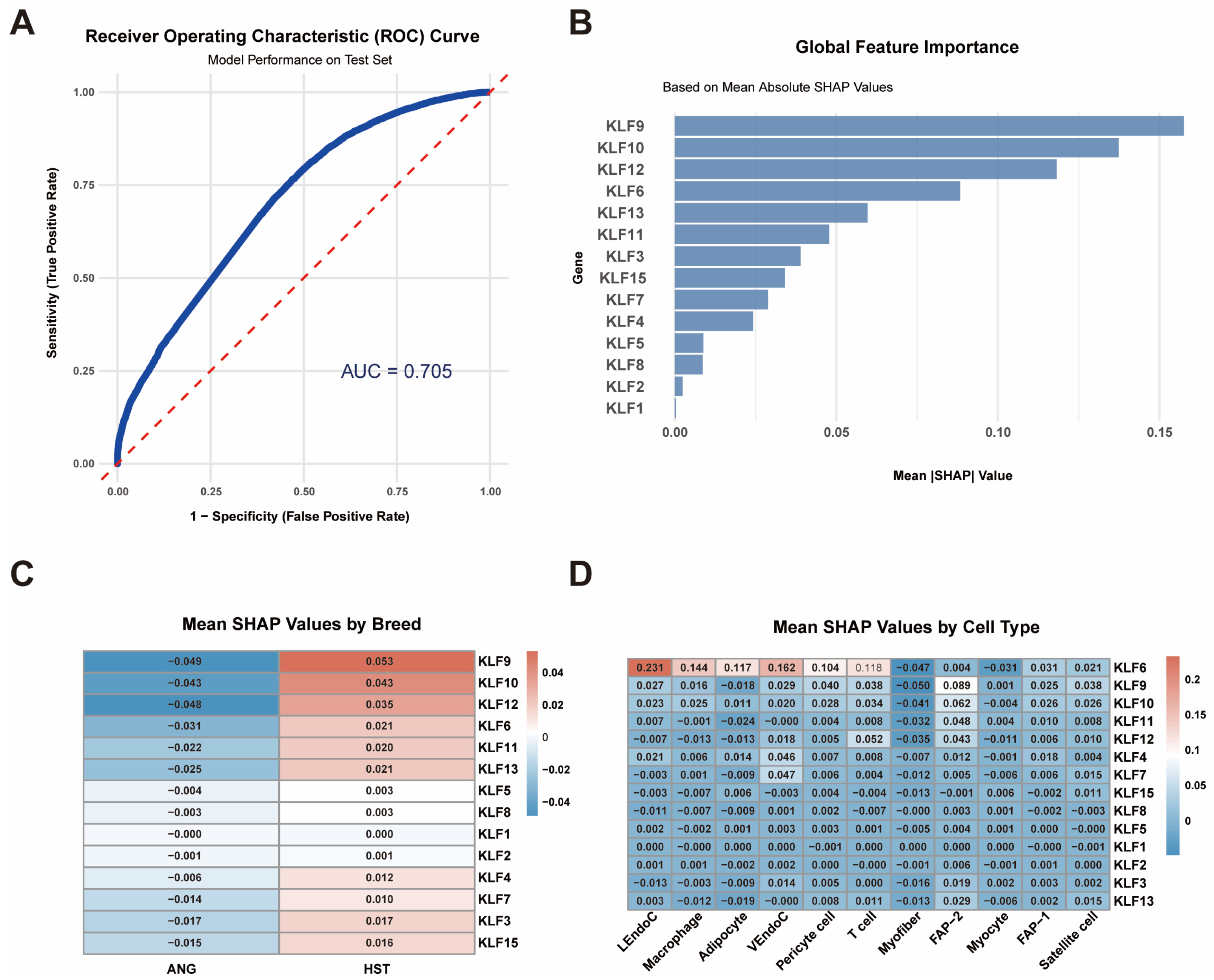 3.7. SHAP Explains the Contribution of the KLF Gene