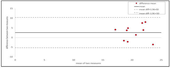 - Parampreet, K.; Stoltzfus, J.C. Bland–Altman Plot: A Brief Overview. Int. J. Acad. Med. 2017, 3, 110–111. [Google Scholar]