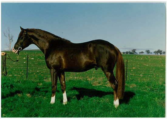 Over the next two years, Cambridge was weaned and sparingly handled, limiting the humanness imprinted on him. He learned quickly, and significantly, he resisted becoming the object of my affections. One night he fled his box in a dramatic thunderstorm, in its aftermath regarding me, his human. But that didn’t make him affectionate towards me; Cambridge was a serious, even distant horse, and I learned to be content with admiring him from afar. Others, including internationally prominent industry figures sensed Cambridge’s reticence too. A big horse, Cambridge was regarded as without fault. He was perfect, physically, at least (Figure 1).