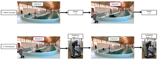 Second, the training protocol included a break or a treadmill session, which appeared to influence the choice of swimming strategy when the horse returns to the aquatic environment. This effect might be attributed to the differences in sensory stimulation between the two environments. In the water, proprioceptive sensors and neurosensory receptors engaged differently. Thus, it can be assumed that an adaptation period is necessary for the horse to adjust to the new sensory information when first re-entering the aquatic environment [