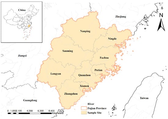 Between September and November 2023, a total of 539 fecal samples were randomly collected from black goats on farms in nine administrative districts of Fujian Province (for collection details, refer to Table 1 and Figure 1). The sample set included 161 samples from male goats and 378 from female goats. Age categorization consisted of 228 samples from goats aged ≤1 years, 181 from goats aged 1–2 years, and 97 from goats aged 2–3 years. Fecal samples were obtained directly from the rectum of each goat, individually sealed to prevent cross-contamination, and labeled with information regarding region, gender, and age. The samples were subsequently refrigerated and transported to the laboratory, where they were stored at −80 °C until further analysis.