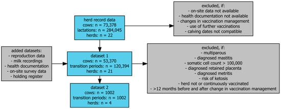 APA StyleKuhn, C., Zerbe, H., Schuberth, H.-J., Römer, A., Kraatz-van Egmond, D., Wesenauer, C., Resch, M., Stoll, A., & Zablotski, Y. (2025). Prepartum Vaccination Against Neonatal Calf Diarrhea and Its Effect on Mammary Health and Milk Yield of Dairy Cows: A Retrospective Study Addressing Non-Specific Effects of Vaccination. Animals, 15(2), 203. https://doi.org/10.3390/ani15020203