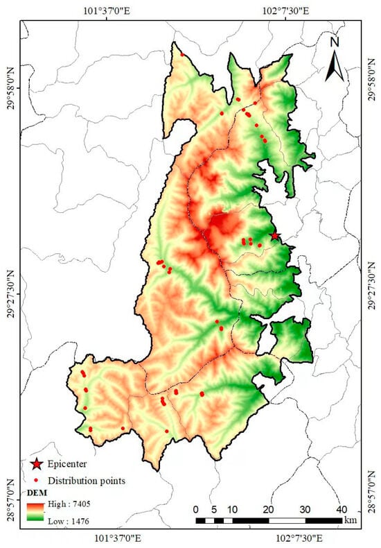 The habitat of a species can be affected by various factors, such as human activity, natural disasters, and climate change. Natural disasters include wildfires, floods, storms, volcanic eruptions, earthquakes, and tsunamis. Earthquakes are one of the most destructive natural disasters. They are sudden seismic movements of great intensity caused by the abrupt liberation of energy due to the deformation of the lithosphere, which propagates as seismic waves in all directions [8]. An earthquake is considered destructive when it exceeds 6.0 degrees on the Richter scale [9], which can lead to changes in the original landscape and the destruction/loss of terrestrial vegetation through their large destructive force and subsequent geohazards, such as mountain floods, debris flow, and landslides [10,11,12,13,14]. This can ultimately damage an ecosystem’s structure and function, habitat quality, and local populations. For example, the Chi-Chi earthquake (M = 7.3) in central Taiwan disrupted the hydrology of streams and ponds, which caused dramatic decreases in Rana swinhoana populations [15]. The Wenchuan earthquake (M = 8.0) in Sichuan Province, China, severely damaged 15.2% of the habitat of three amphibians (Batrachuperus tibetanus, B. pinchonii, and Amolops mantzorum) in the earthquake-affected area [16]. Understanding the impact of earthquakes on habitat suitability for an endangered species with limited dispersal capacities is crucial for formulating effective protection and management measures for preserving these species and conserving their habitats.