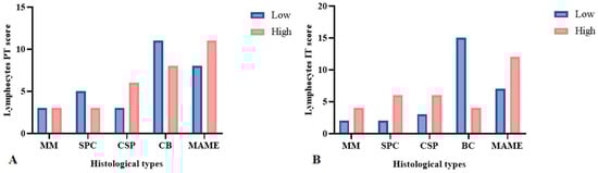 3.1. Association Between Inflammatory Infiltrate in Relation to Subtypes and Immunophenotypes of Solid Neoplasms