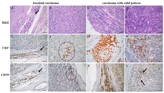 - Porcellato, I.; Silvestri, S.; Menchetti, L.; Recupero, F.; Mechelli, L.; Sforna, M.; Iussich, S.; Bongiovanni, L.; Lepri, E.; Brachelente, C. Tumour-infiltrating lymphocytes in canine melanocytic tumours: An investigation on the prognostic role of CD3+ and CD20+ lymphocytic populations. Vet. Comp. Oncol. 2019, 18, 370–380. [Google Scholar] [CrossRef]