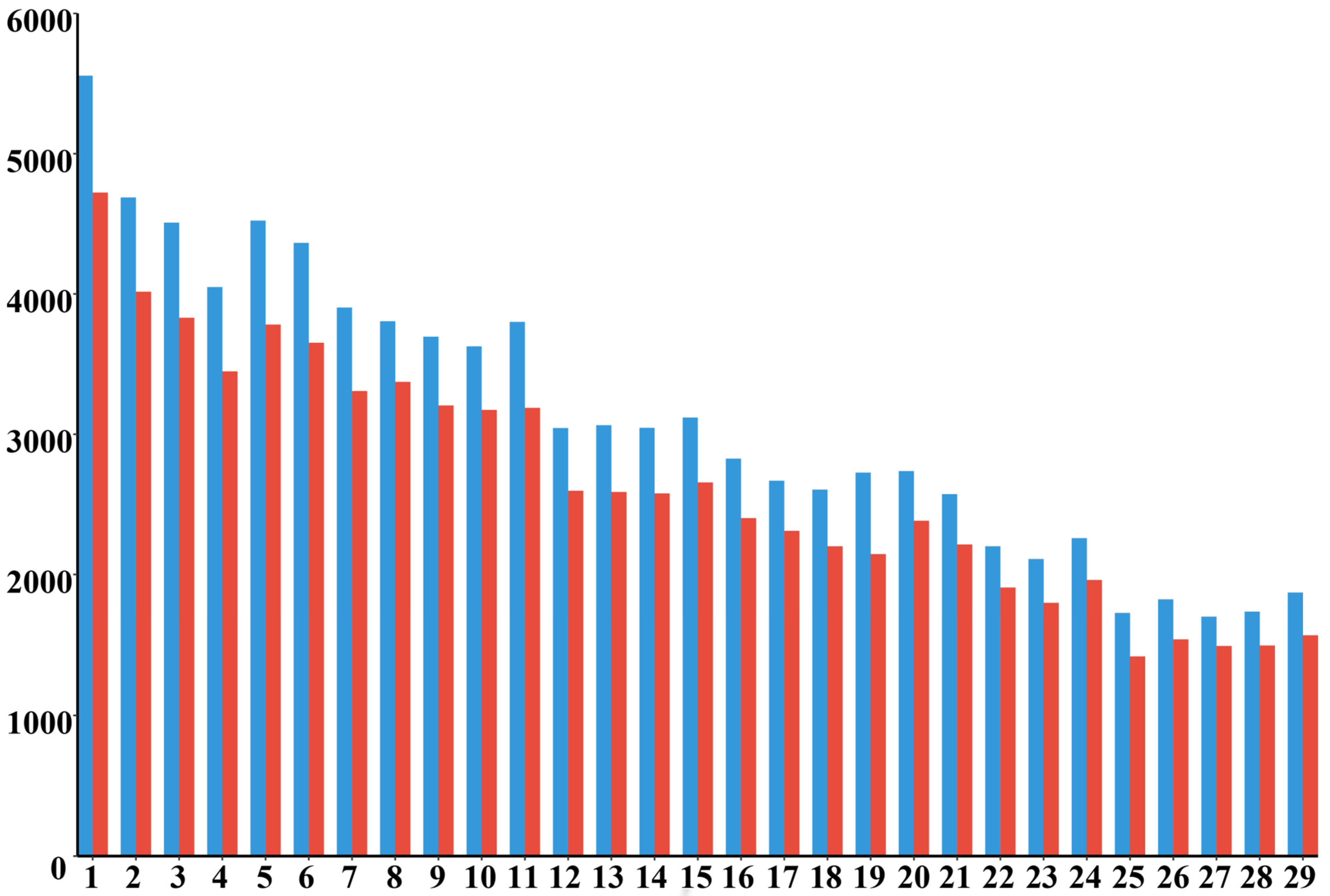 - At the chromosome level, the distribution of ROH across the 29 autosomes was uneven. Chromosome 8 exhibited the highest number of ROH fragments, totaling 115, while chromosome 27 had the lowest, with only 23 fragments. This disparity in the accumulation of pure fragments across different chromosomes may be attributed to genetic drift or selective pressures acting on specific chromosomes, such as those associated with quantitative trait loci (QTL) related to meat quality, body size, and reproduction. These factors are likely intensified through repeated selection during conservation or breeding processes.