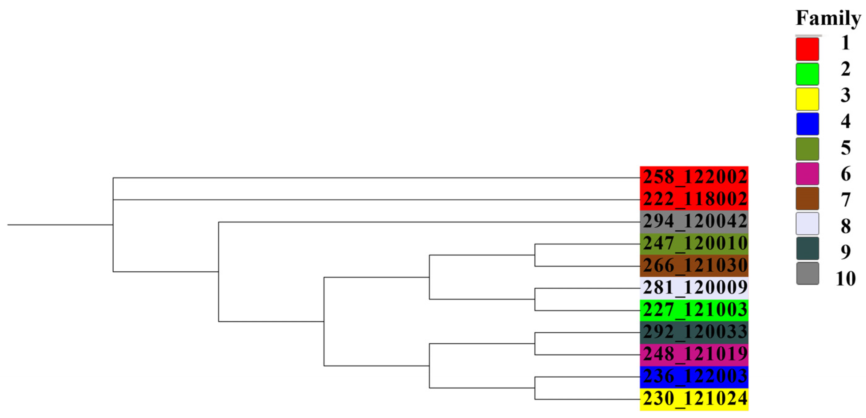 2.2.6. Family Structure Analysis of Dengchuan Cattle Breeding Groups